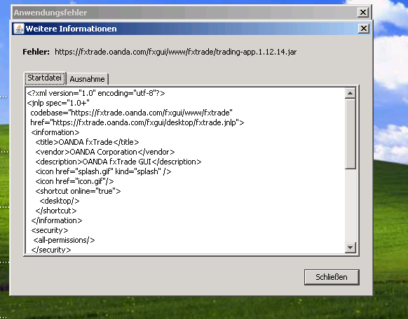Heute Morgen kam ich rein, als ich handeln wollte, riss die Verbindung wieder ab. Als ich wieder drinnen war, wollte ich meine Order ab schicken, da kam ein Fenster ich ,müsste erst wieder die Verbindung trennen, und noch mal auf bauen, das die Order ausgeführt würde.Dann wollte ich wieder über Desktop rein, da kam wieder die Fehlermeldung ,die Anwendung konnte leider nicht gestartet werden. Dann die ständigen Hänger, wenn ich zwischen den verschiedenen Fenstern hin und her klicken will, lässt für mich einen Handel über Oanda der Zeit nicht mehr zu.mfg dobi