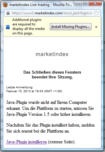 Und so sieht das Fenster aus, wenn der Rechner neu gestartet wurde. wenn ich da auf" ok" klicke, geht die Plattform dann doch auf, aber wie gesagt nur ein mal.