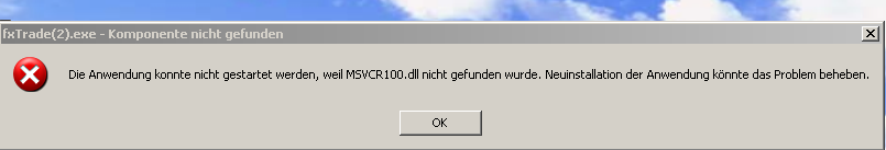 Um die nervende Fehlermeldung zu umgehen, habe ich einfach die Datei msvcr100.dll auf den Desktop kopiert. Du findest sie mit großer Sicherheit im Windows-Ordner.