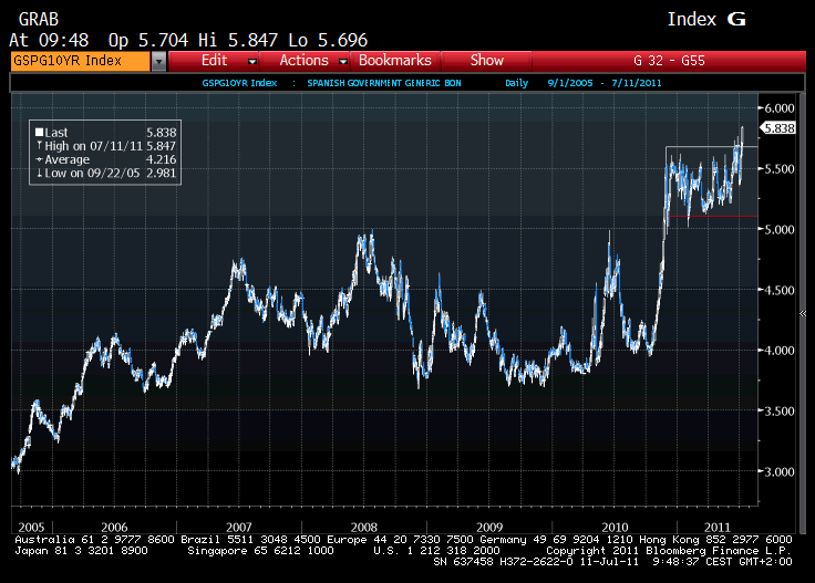 Halbwegs im grünen Bereich ist aber charmant ausgedrückt. bei 7 % ists vorbei. (Steigt und steigt heute. genauso Italien)