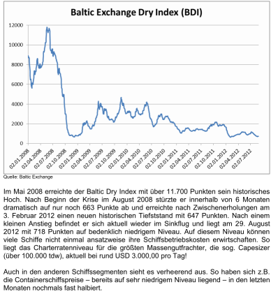 Angehängtes Bild zeigt/beschreibt derzeitige Problematik. Weiterhin wird in der Analyse darauf hingewiesen, dass das Verhalten der Banken in letzter Zeit vollkommen unkalkulierbar wurde (Commerzbank als bislang weltgrößter Schiffsfinanzierer will aus dem Segment aussteigen); zuständige Bankmitarbeiter seien (auch zeitlich) überfordert, bei denen gehe wohl auch die Angst des eigenen Arbeitsplatz-Verlustes um. Außerdem: Stichwort Burnout für diese Leute."Promising pussy in the after-life is the lowest thing I ever heard..." - Bill Maher