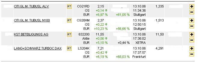 anbei ein Screenschon meines tatsächlichen Positiontrading Depot, selbstverständlich mit geschwärzten Stückzahlen oder Geldbeträgen.