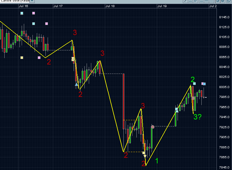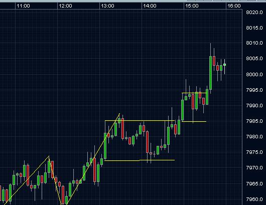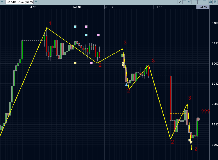 Einstieg: 09.09 Uhr bei 7960 Punkten LONG per Limitorder am Durchbruch der alten 3 (Trendwechsel)