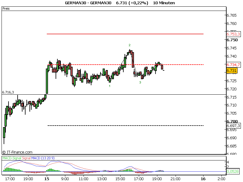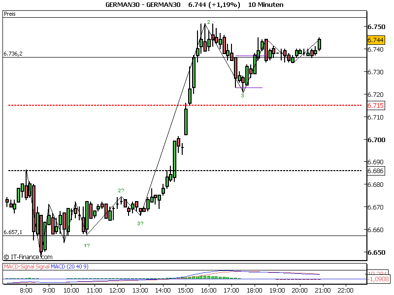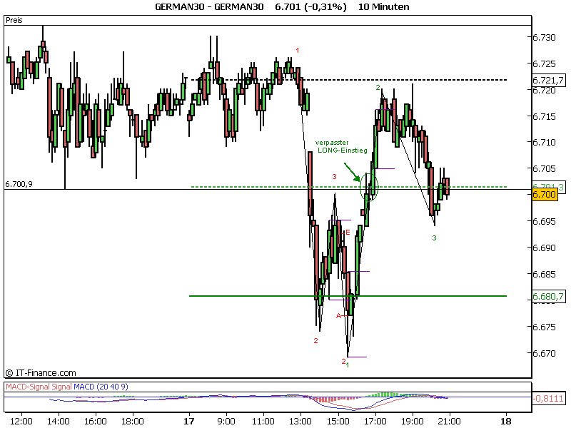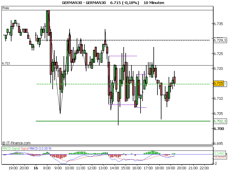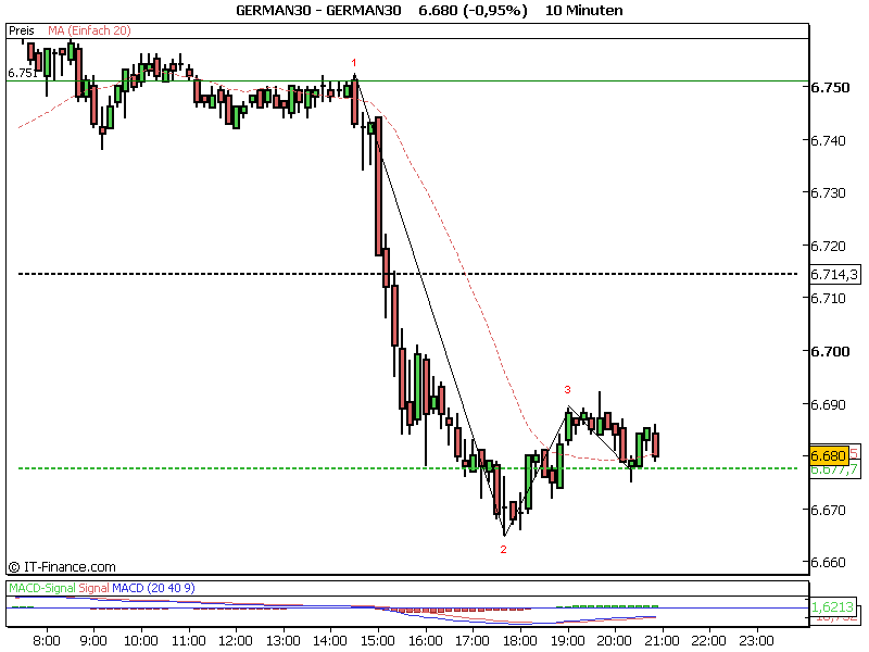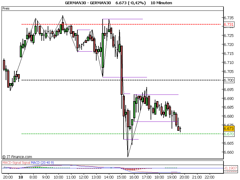 Edit: Heute ebenfalls. Tagestief gegen 9.20 Uhr bei 6672 und dann ging es um 11.25 Uhr nach unten. Wenn man jetzt rausgeht sind 40 Punkte drin.