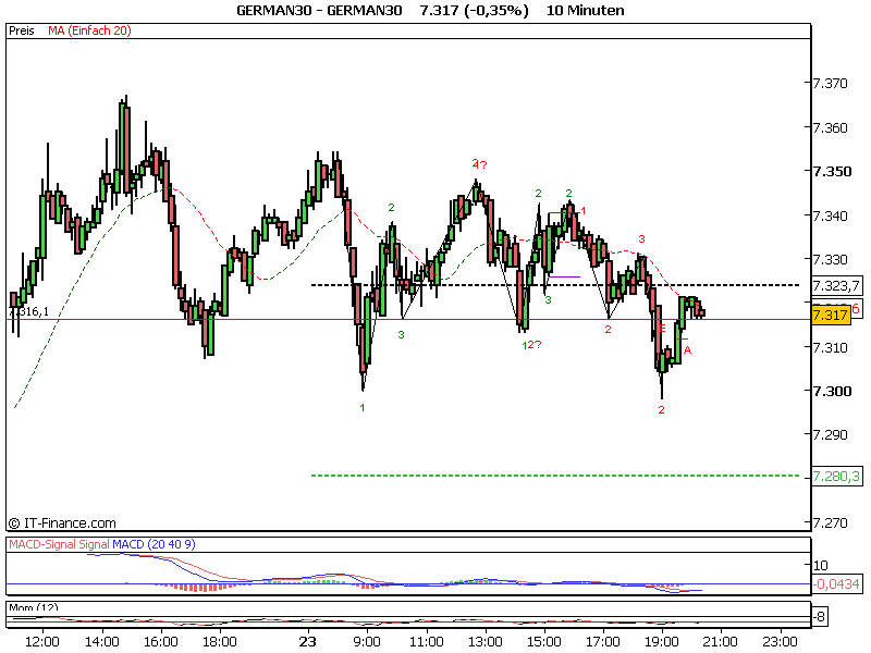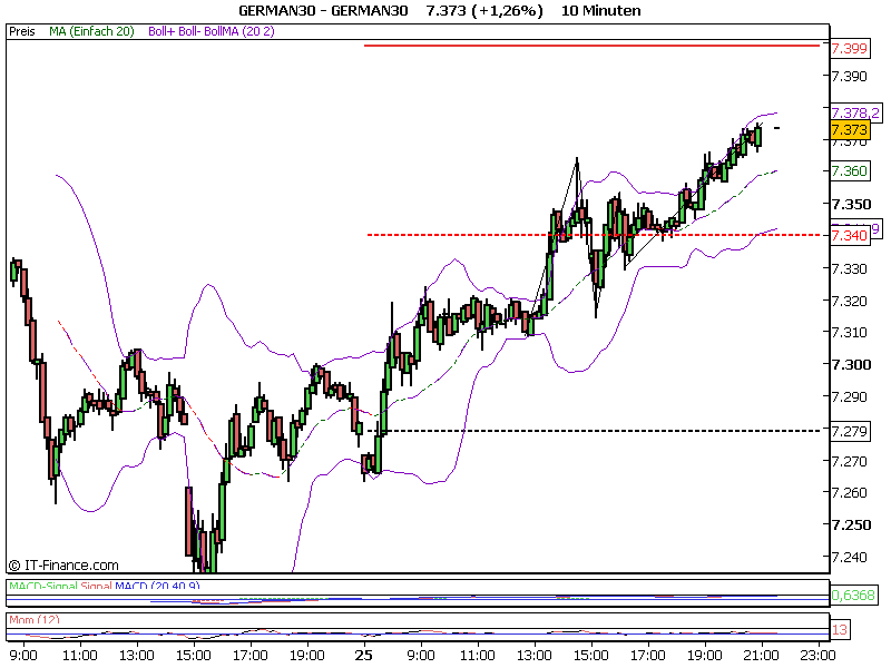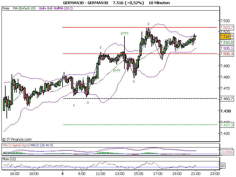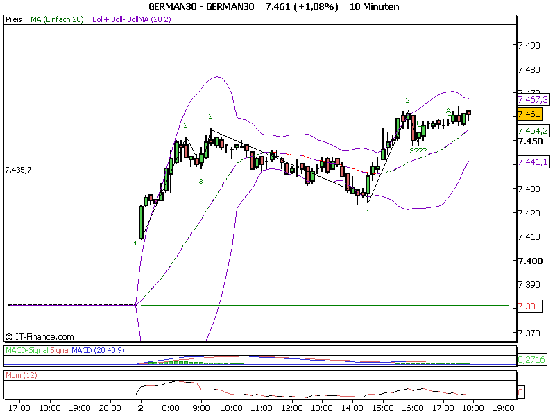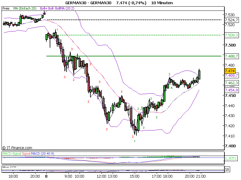 Einstieg: 16.51 Uhr (Systemzeit 15.51 Uhr) LONG (Marketorder) bei 7433 Punkten