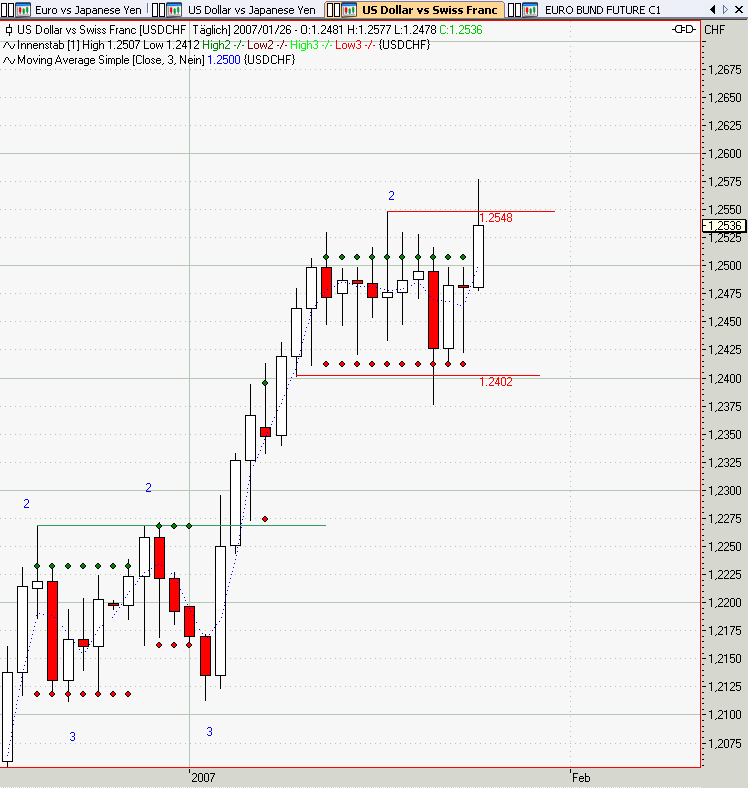 USDCHF TS auf 1,2334 wegen Innenbar