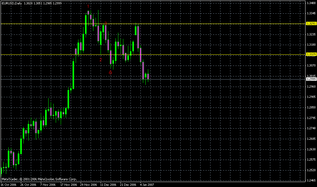 EURUSD am 5.1.2007 mit 0,2 Lot Short und am 11.01. mit 55 Pips und 85,15 ausgestoppt.