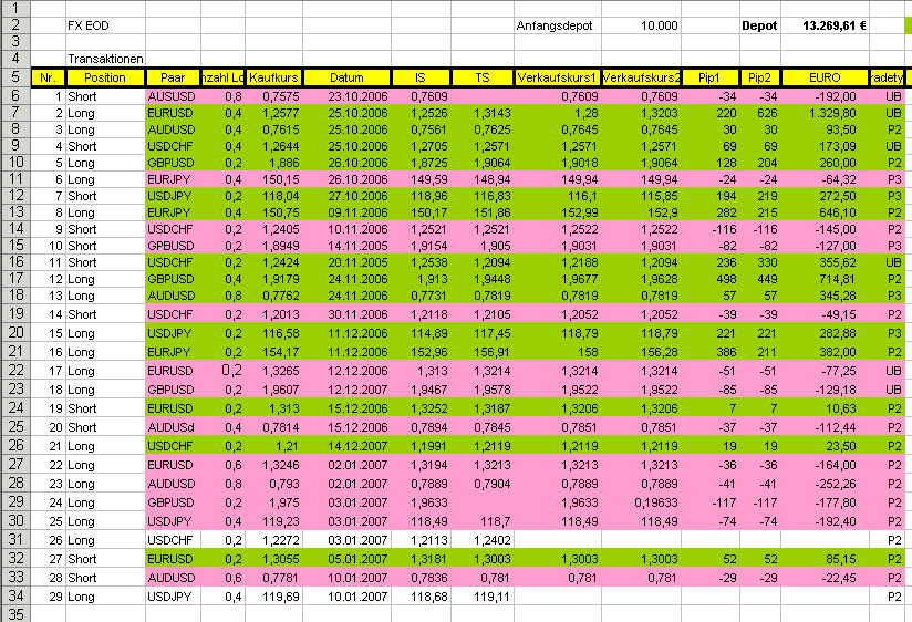 Short am 10.01.2007 mit 0,6 Lot @ 0,7781 und IS 0,7836 am TS 0,7810 am 11.01. mit -29 Pips bzw -22,45 € ausgestoppt!