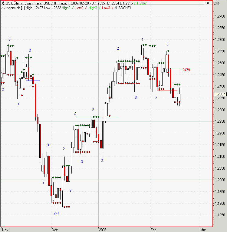 USDCHF TS auf 1,2334 wegen Innenbar