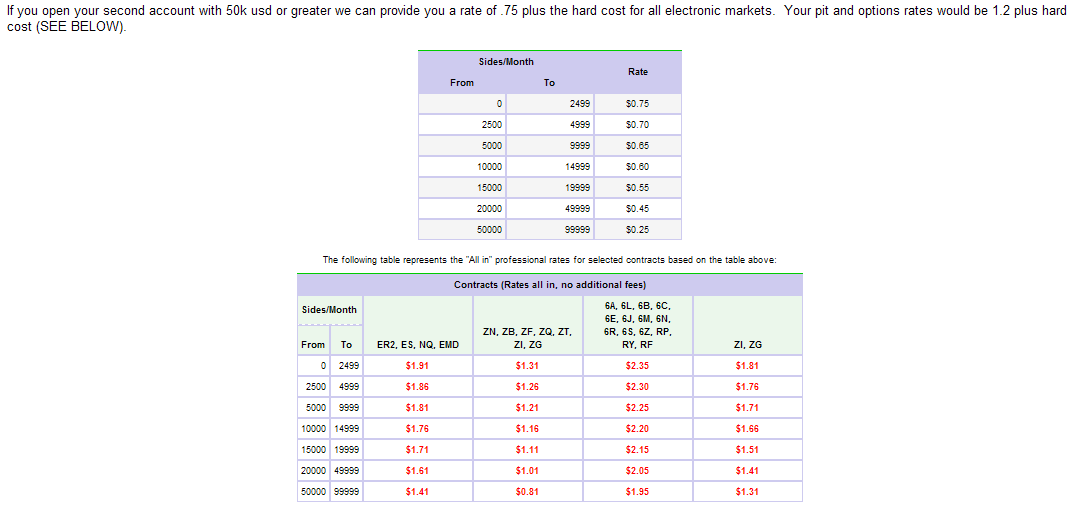 Danke - aber eigentlich war ich ja auf der Suche nach einem geeigneten Forex-Broker und nicht Futures-Broker, da fühle ich mich bei OEC mit dem nachfolgenden Gebührenmodell ganz gut aufgehoben. Da würde sich, nach meiner Recherche keine Verbesserung ergeben - im Gegenteil.