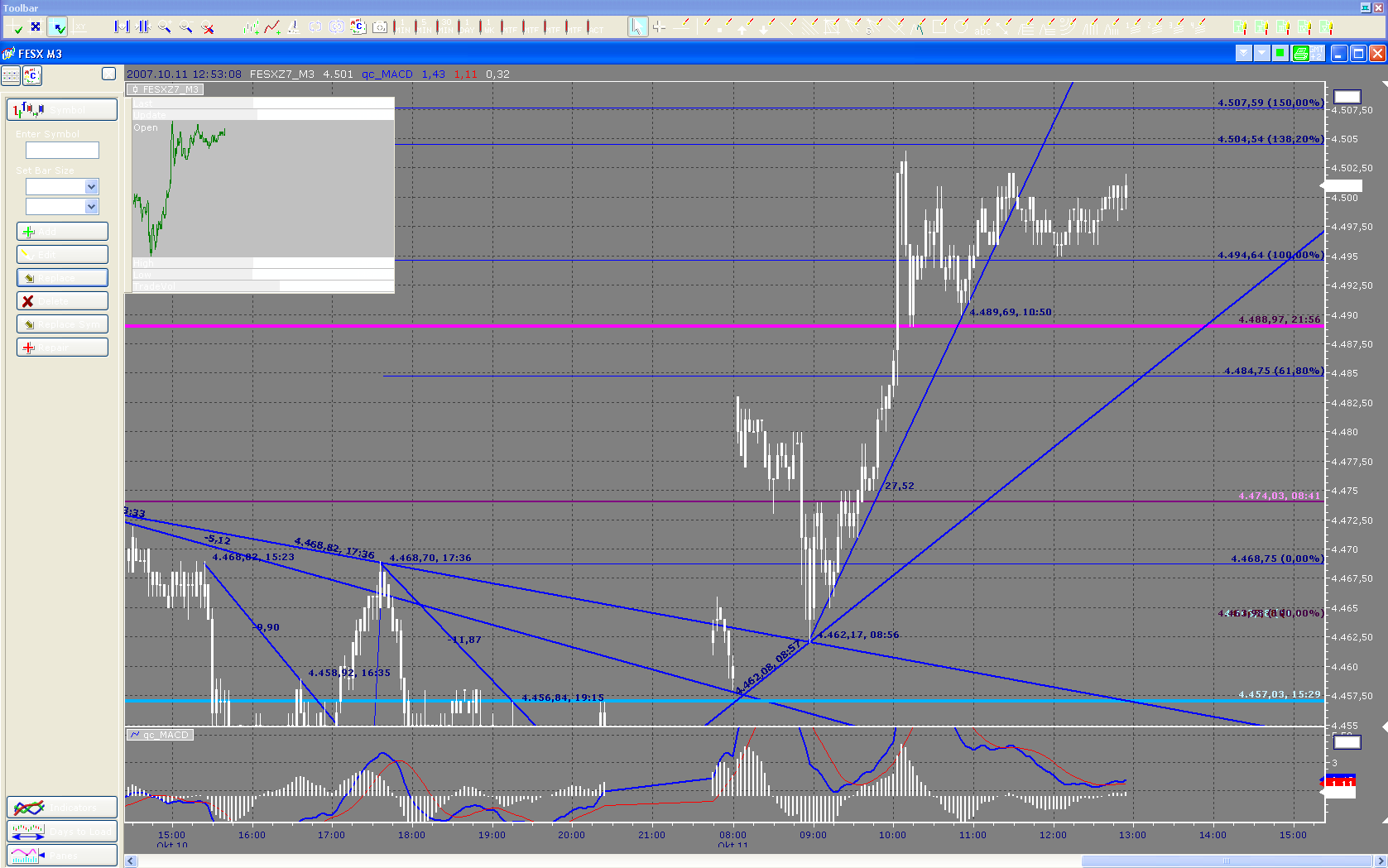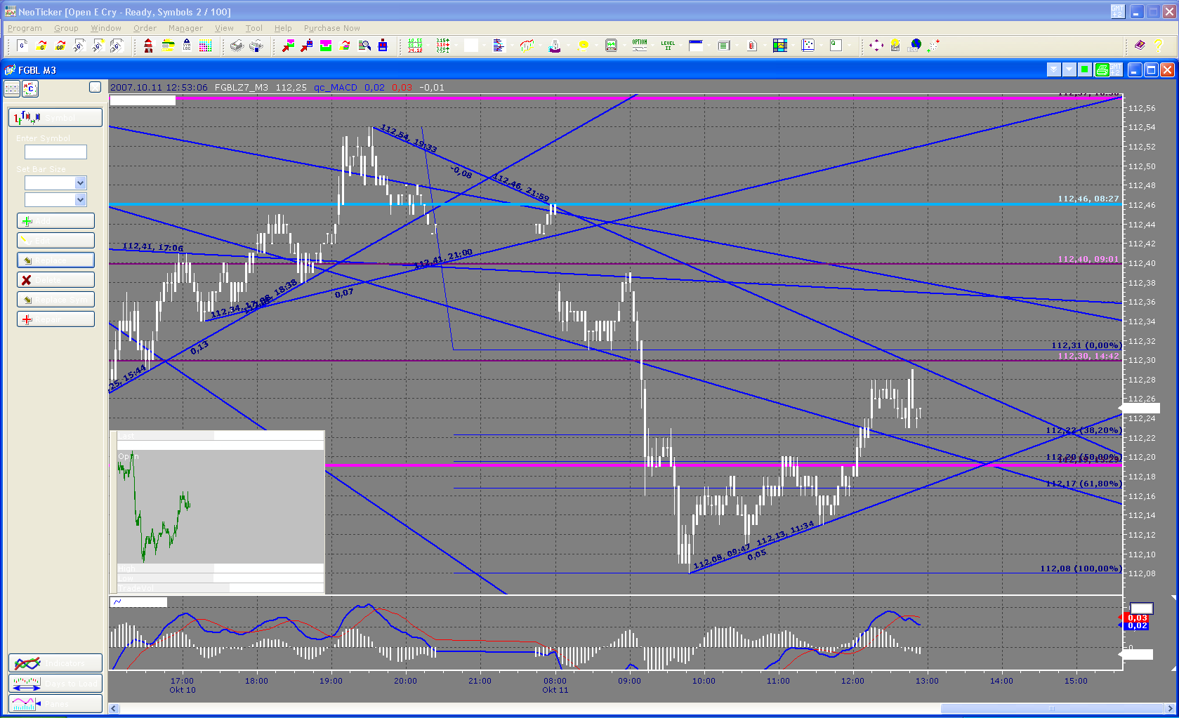 Habe übrigens den NeoTicker mit dem kostenlosen Brokerfeed von Open e Cry zum Laufen gebracht. Der erste Eindruck ist durchaus positiv! Anbei zwei Charts, mehr geht in der Demo nicht.