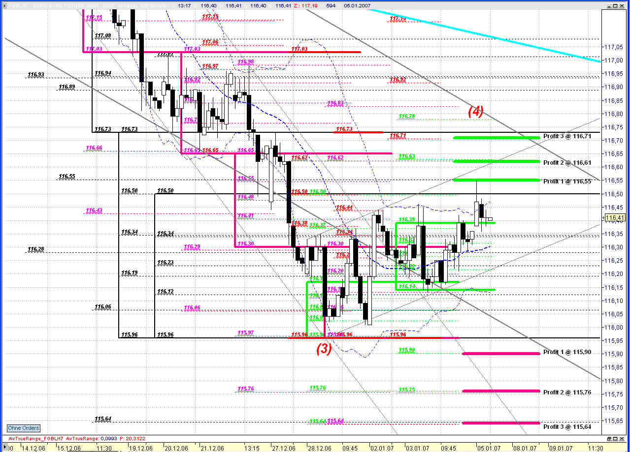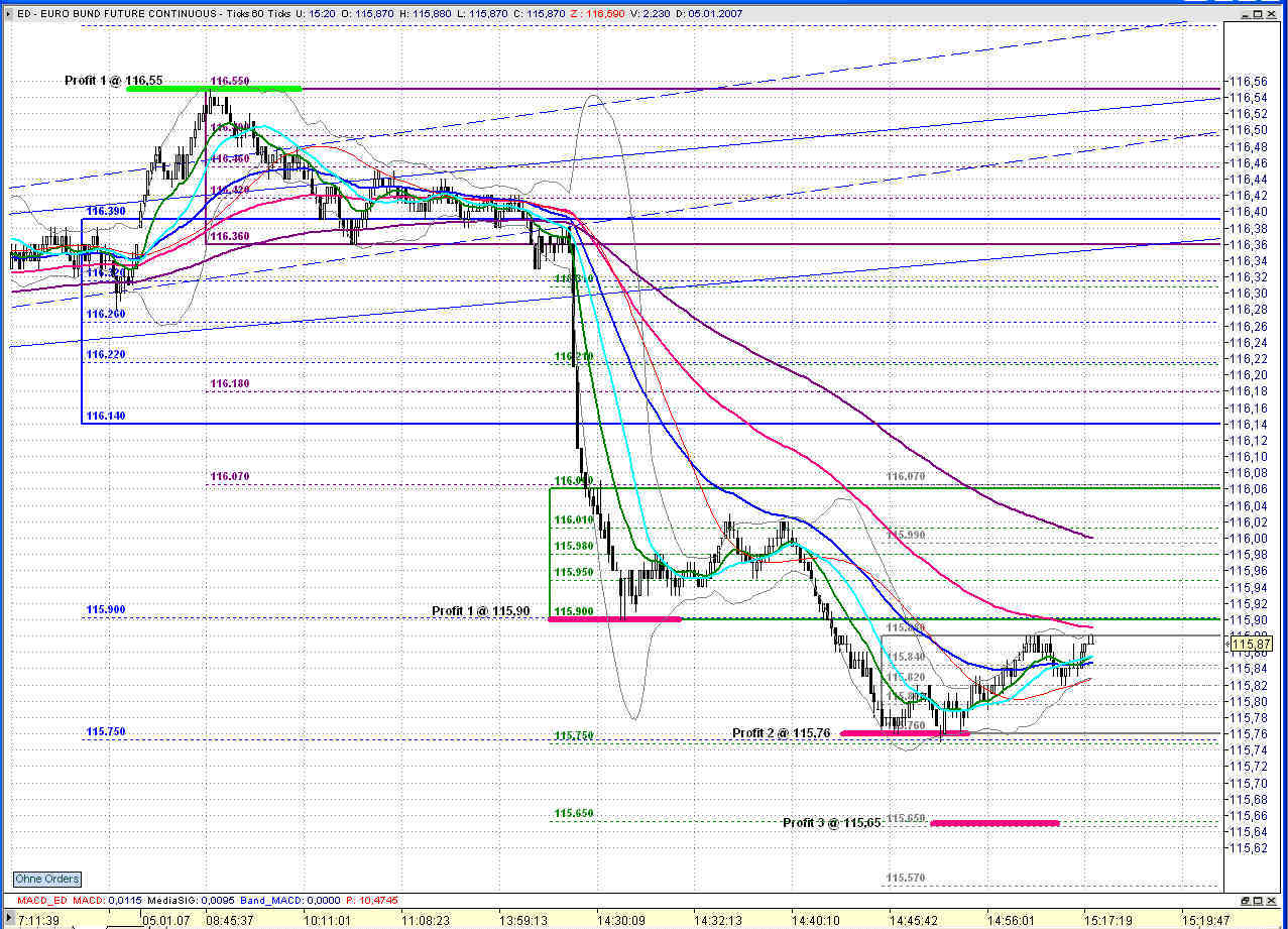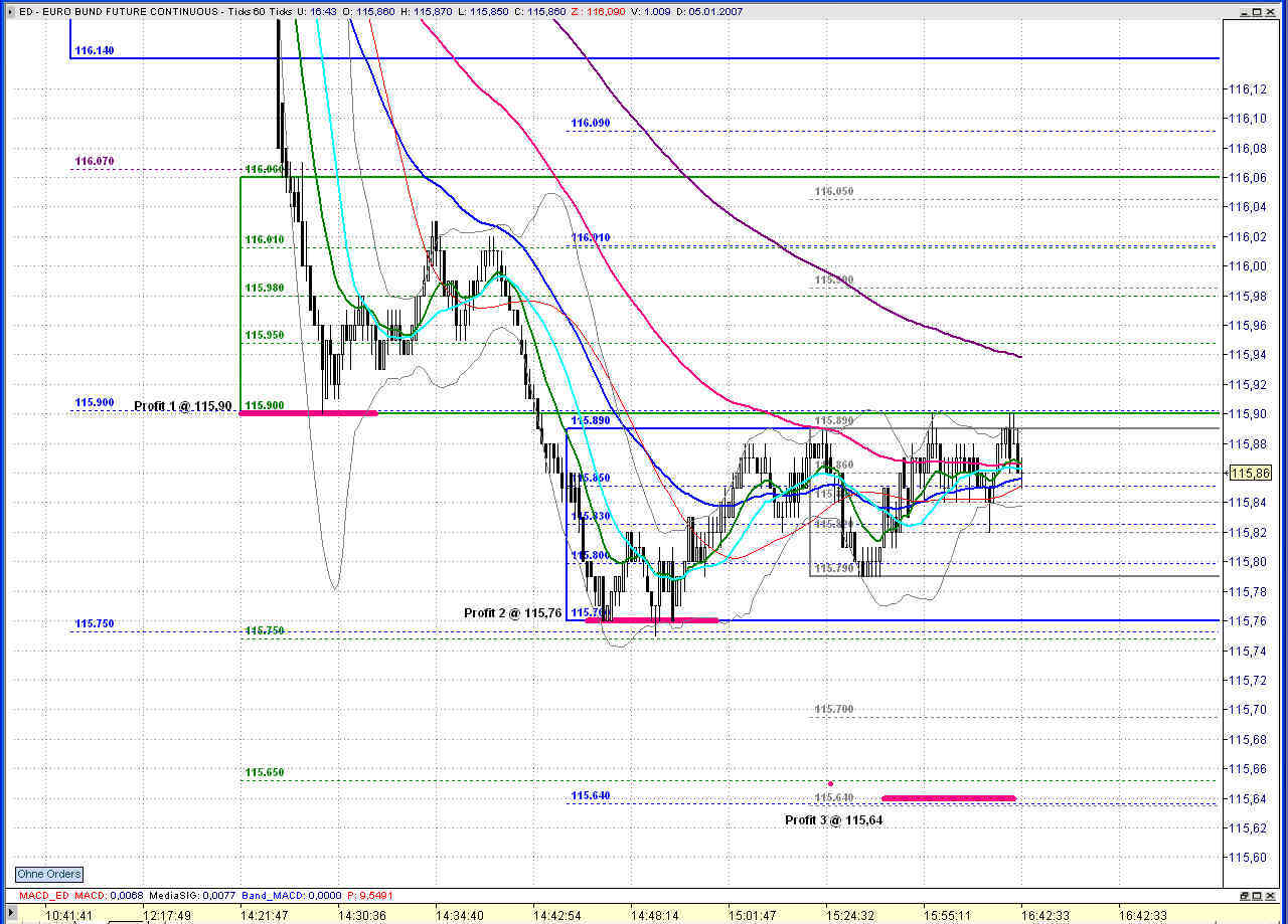 Zumindest hat er heute schon drei Marken angelaufen bzw. kurzfristig Gegenreaktionen gezeigt. Nach oben punktgenau die 116,55 und nach unten jeweils bei 115,90 und 115,76.