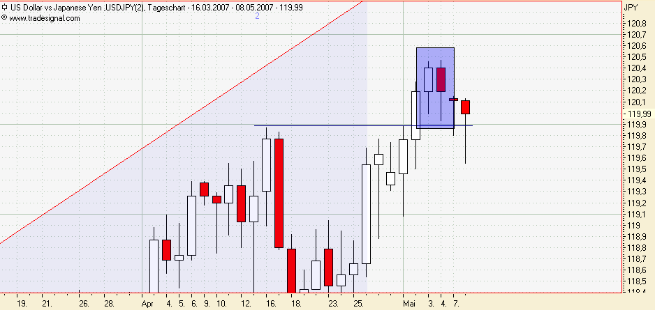 USDJPY: Am 04.05. ausgestoppt am TS mit -4 Pips bzw. -4,88€.