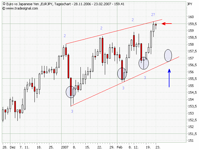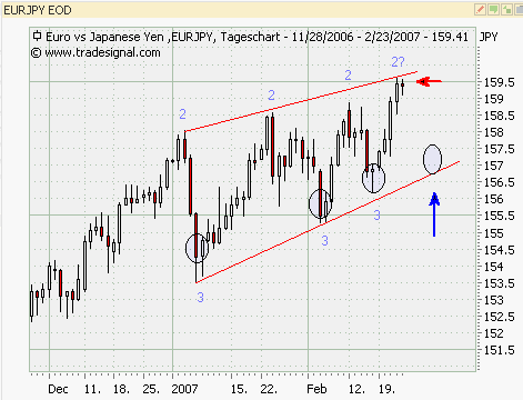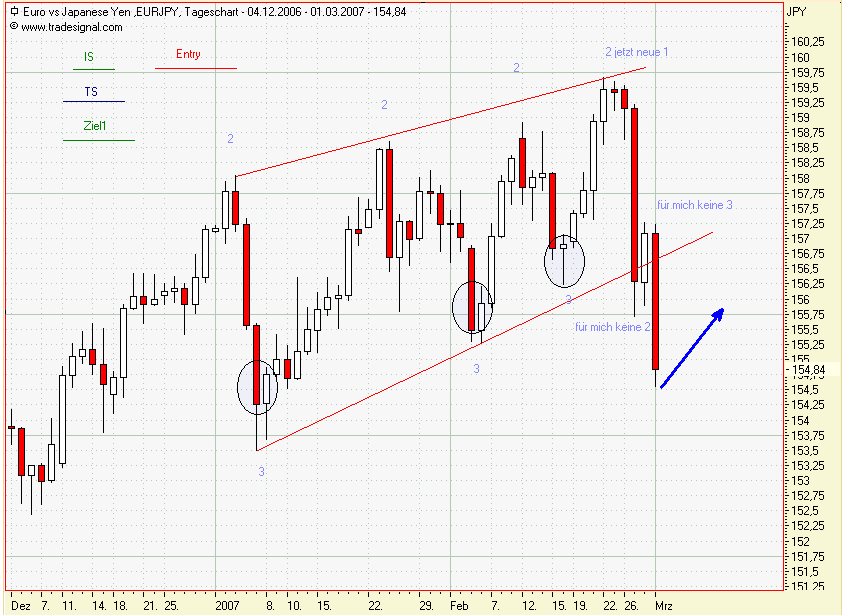 EURJPY: Die gestrige Candle habe ich nicht als Punkt 3 angesehen und deshalb warte ich auf einen neuen Punkt 2! Also bitte eine Korrektur!