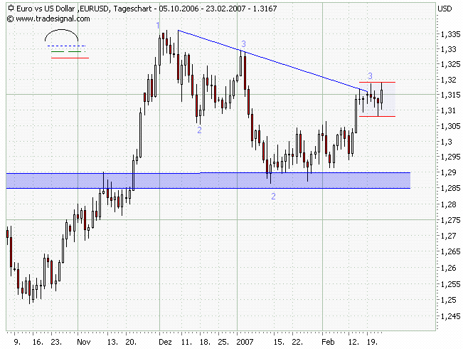 Die nächsten Tage dürfte sich entscheiden, ob Dein Ziel noch erreicht wird oder ob der Euro wieder gen Norden geht.