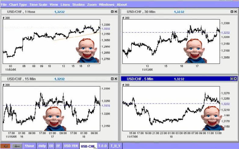 It is much easier to see the major trend using weekly data, find the short term direction based on daily data, and time short entry using hourly bars."