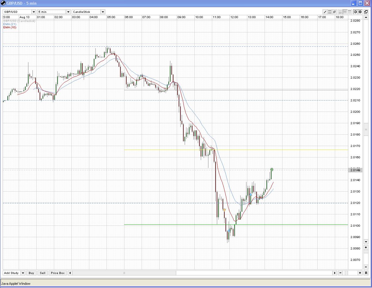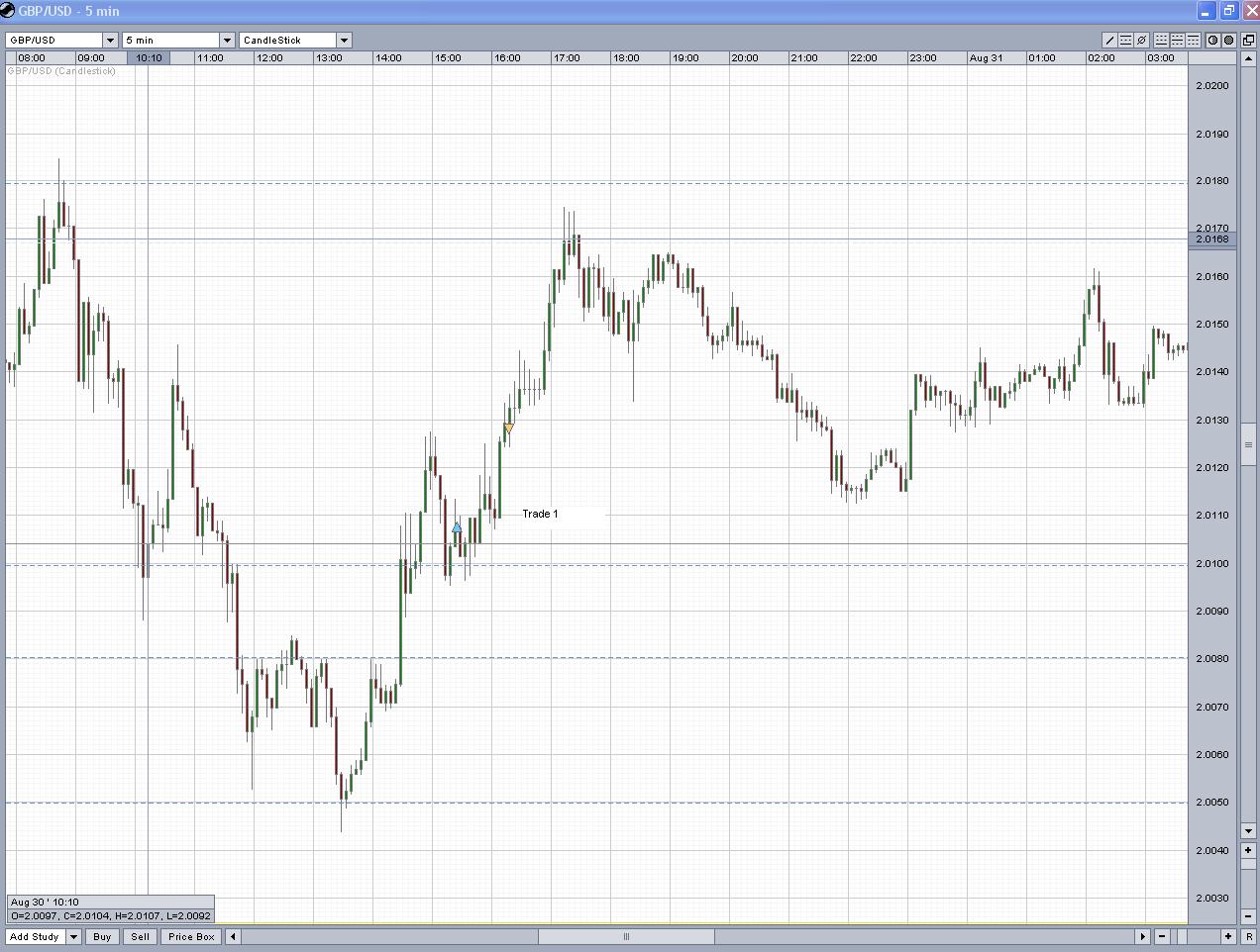 Trade 2 war wieder mal ein Bauchtrade, nachdem ich die vorherige Pos geschlossen hab und wie oben schon erwähnt ich eben ein doppelten Boden interpretiert hab long @ 2,0185. Konnt wieder mal nicht warten :( Stop bei 2,0170