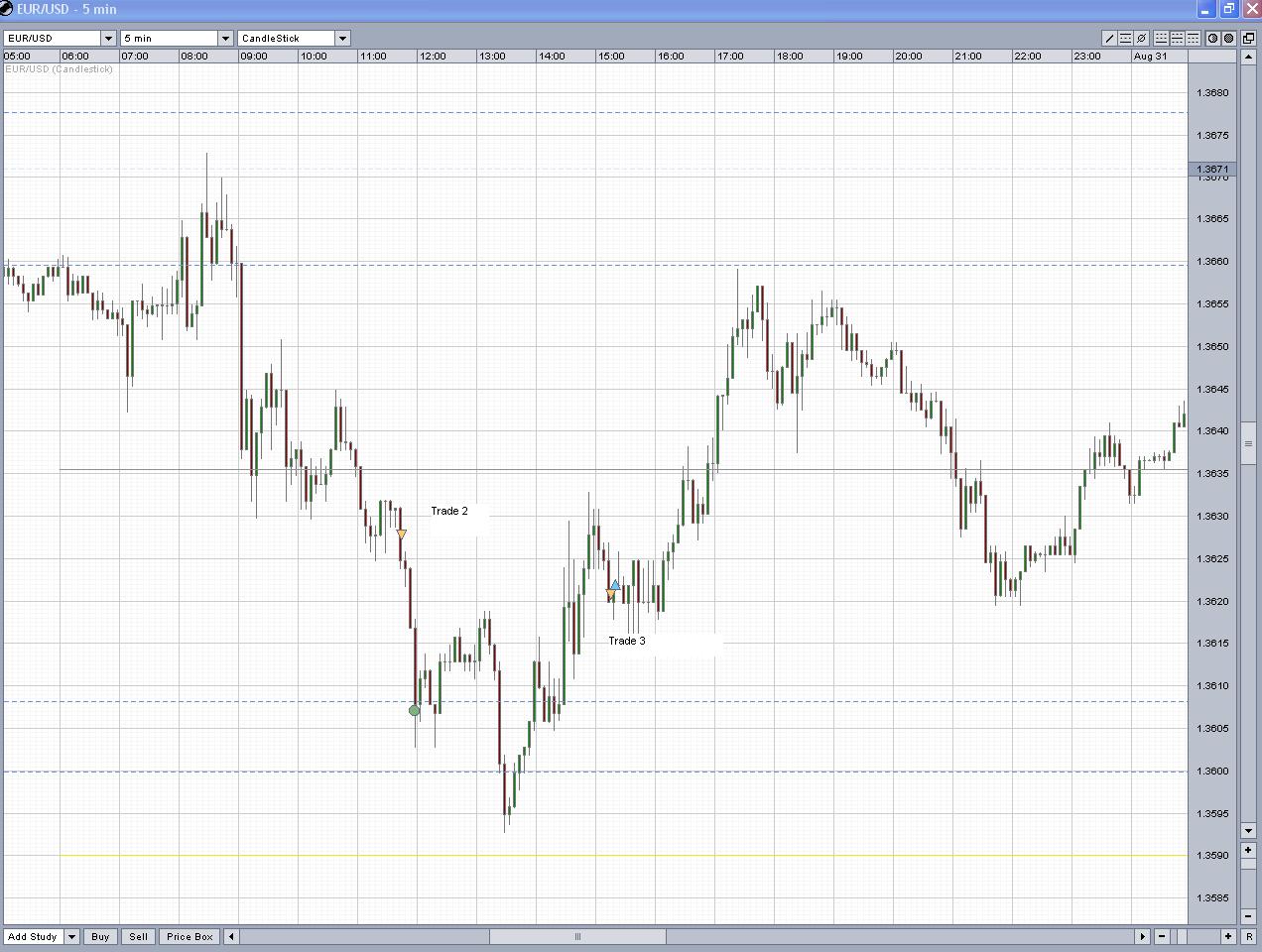 Ein Trade hatte ich noch im EUR/USD der war ähnlich wie mein Trade 6. Ich sprang auf der suche nach einem günstigen Moment auf den fahrenden Zug auf.