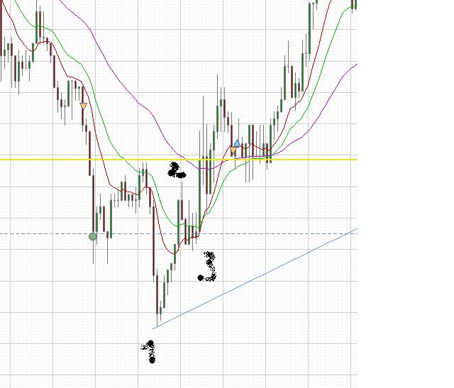 Keine Ahnung was mich hier geritten hatte, immer noch gefrustet und verärgert über meine Dummheit, aber doch irgendwie der Meinung Herr der Lage (schliesslich hatte ich ja grad 8 Pips plus gemacht und somit mein Minustrade verkleinert) zu sein. Bin ich short bei 27. Ergebniss -16!!!