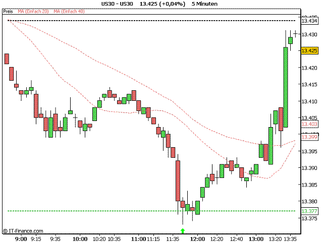 Der vorgegebene Einstieg durch DOW Pivotbildung erfolgte bereits zwischen 12.40 h und 13h. MEZ.
