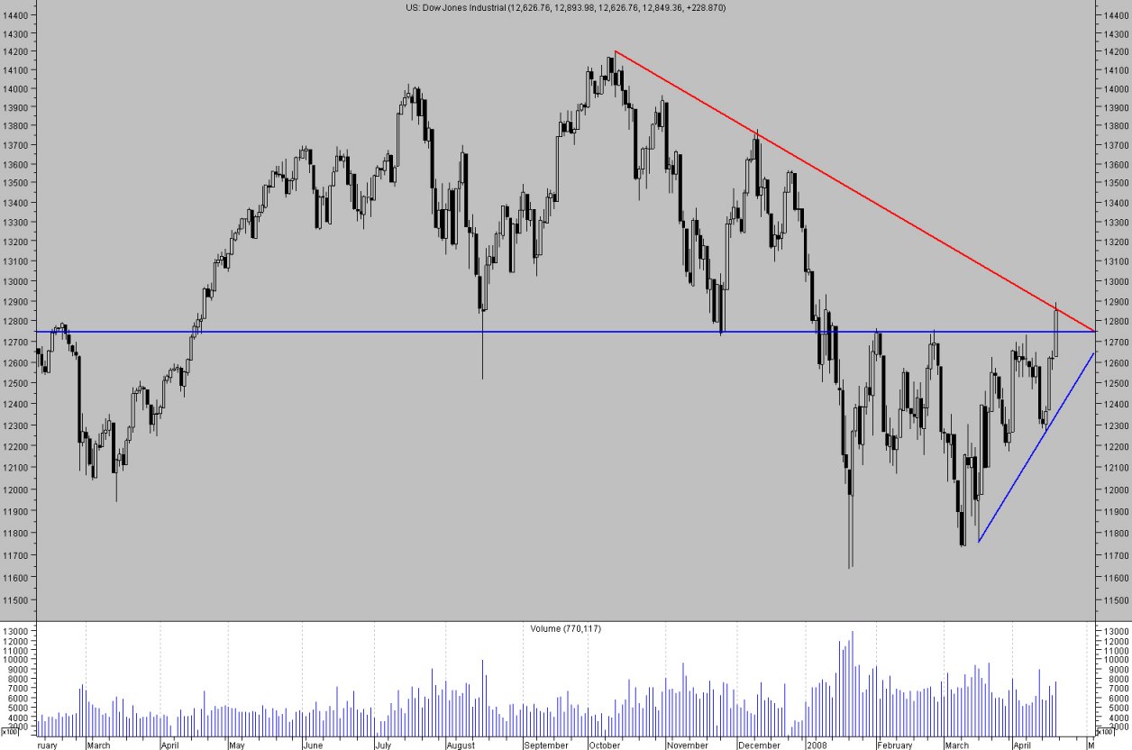 Und täglich grüßt das Murmeltier Teil II: Intraday-Reversal im Dow - Tagsüber schwach, aber abends wird er munter. Wenn die u.a. von John Bollinger vertretene These stimmt, dass die Profis eher die Schlusskurse bestimmen, dann könnten die Bewegungen von gestern und heute ja Rückschlüsse zulassen. Hat sich heute auf jeden Fall gelohnt, den Abend am PC zu bleiben.