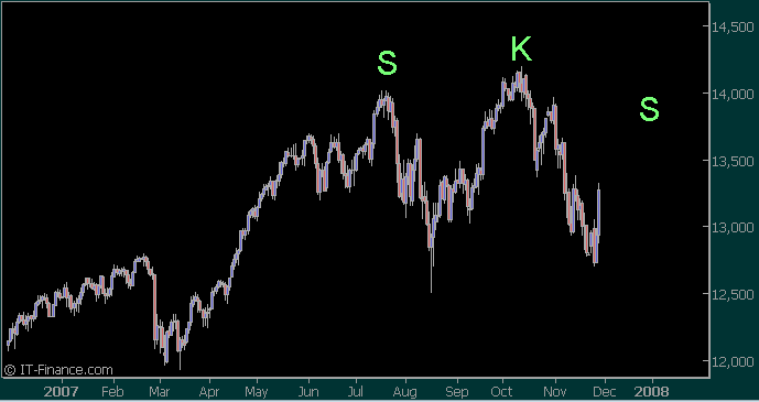 Entwickelt sich der DJ in eine Formation? Wieder SKS (Schulter - Kopf - Schulter) wie beim letzten Turn?