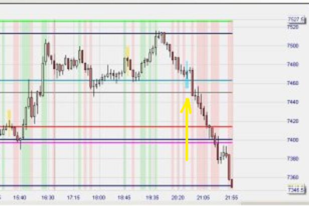 der ADX misst die Trendstärke. Ideal ist ein ADX > 20 und steigend. Dann kommt Bewegung. Aber die Trendrichtung wird nicht angezeigt. Ergibt sich aber aus der Marktechnik. Wenn der Trend auf 15min vorhanden ist(ADX>20 und steigend) ist die Wahrscheinlichkeit groß auf dem Tickchart einen guten Durchbruch durch einen P2 zu bekommen.
