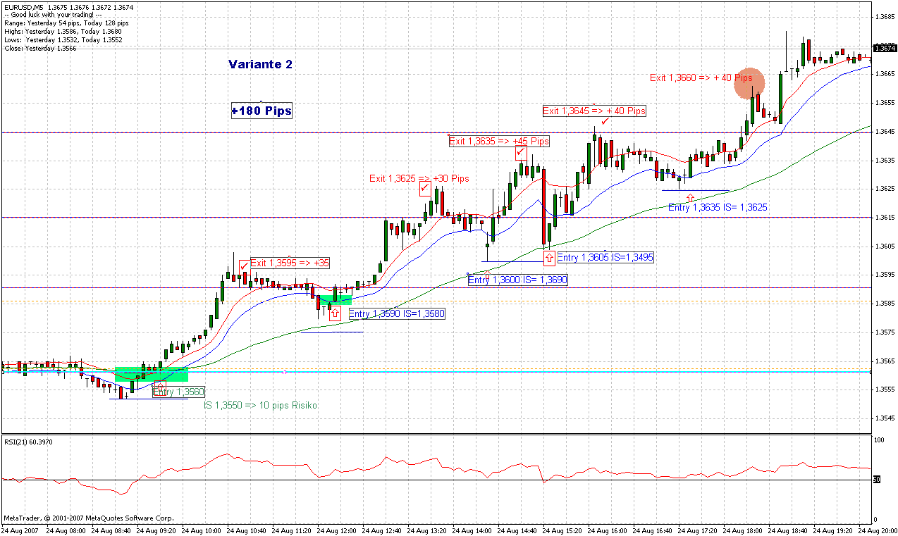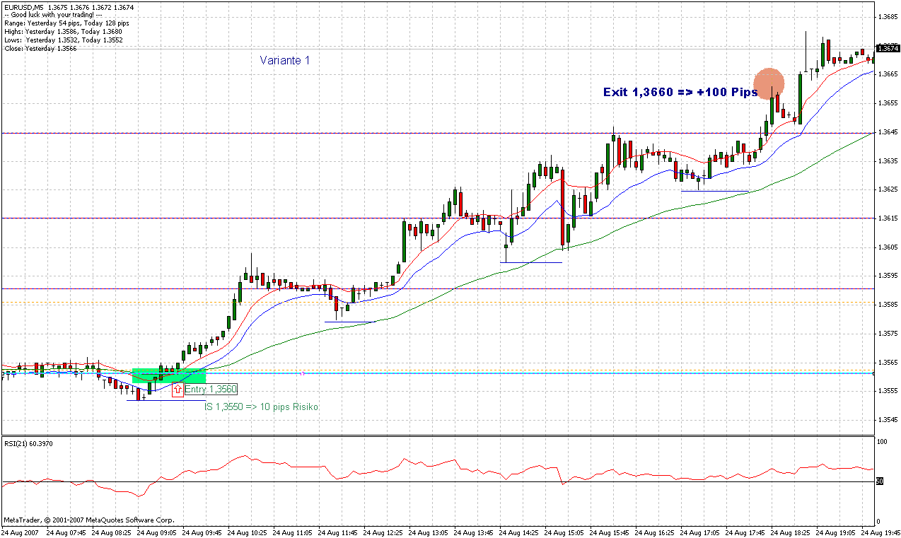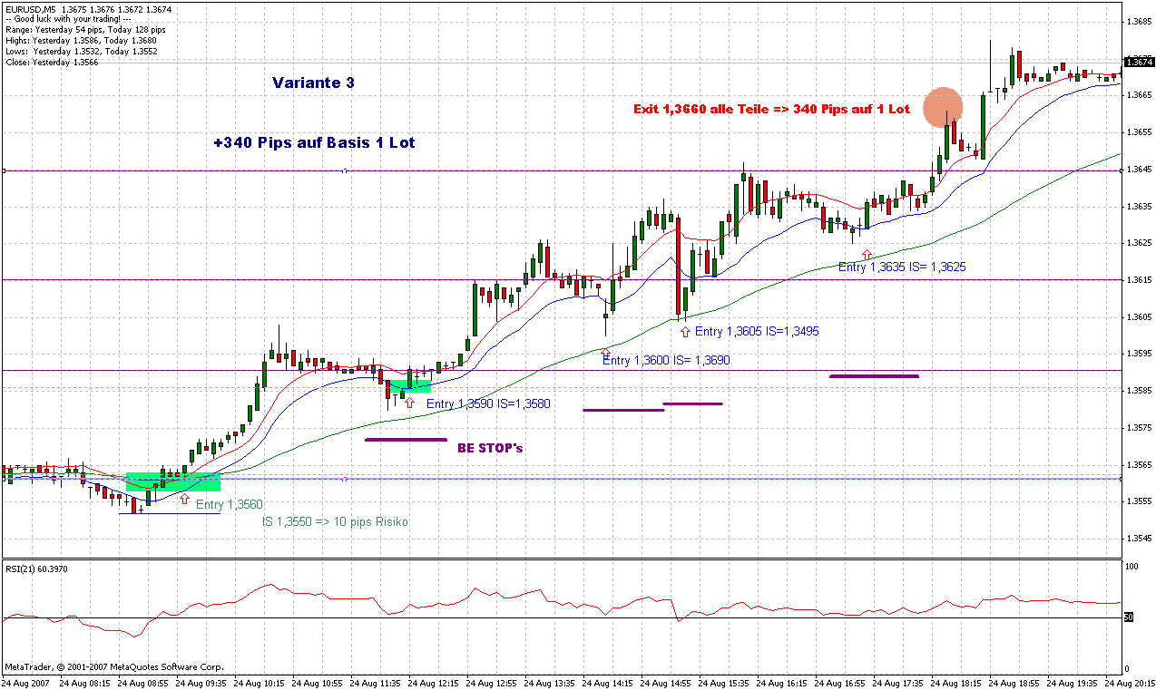 In Variante 3 könnte ich den Stop auf 1,3570 = BE legen und hätte immer noch einen Gewinn aber auch die erhöhte Position auf BE abgesichert. Das ist etwas anderes.