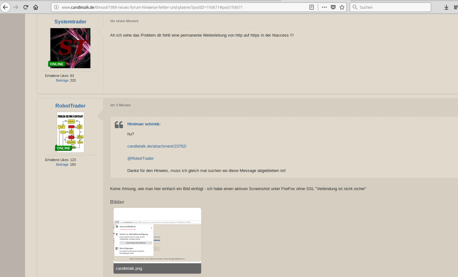 Die Forensoftware verhält sich merkwürdig. Verliert man mit dem Firefox unter Android kurzzeitig die Verbindung oder schaltet das Netz zwischen den Funkprotokollen um, wird die Sitzung ungültig, was alleine zwar ärgerlich aber noch innerhalb der Grenzen der benutzten Protokollstacks liegt.