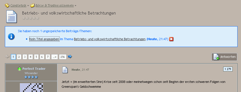 es ist eben ein "intelligentes Forum" oder genauer die ForumSoftware und erkennt was wirklich neu ist und was nur zum wiederholten male geschrieben wurde. Also Wiederholungen filtert der "Neuigkeitsindikator" einfach raus. Zum Beispiel GeorgM' Thread. Da geht es wieder los mit dem gleichen Gezeter. Alles nicht real etc... Wurde sicherlich als Neuigkeit rausgefiltert.