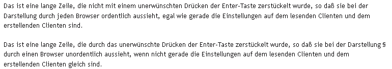 Wie soll ich es richtig machen ? Ich schreibe den Text direkt in das Feld und kopiere nicht hinein. Soll ich bis zum Ende des Textfeldes schreiben und dort macht das System für den Umbruch ? Ich schreibe mal weiter bis der Umbruch von selber, sprich vom System erfolgt, wie es gerade eben geschehen ist.