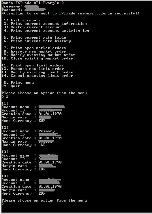 I get back in the console other account information such for Account ID and Margin etc.,