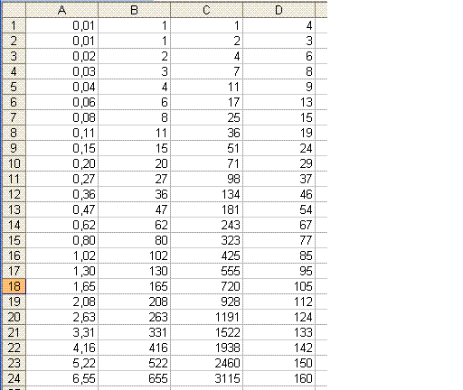0.01 - 0.01 - 0.02 - 0.03 - 0.04 - 0.06 - 0.08 - 0.11 - 0.15 - 0.2 - 0.27- 0.36 - 0.47 - 0.62 - 0.8 - 1.02 - 1.3 - 1.65 - 2.08 - 2.63 - 3.31 - 4.16 - 5.22 - 6.55