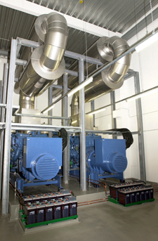 Zwei Aggregate von jeweils 1325 kVA mit MTU-Dieselmotor Type 12V4000 und LEROY SOMER Generator. Sie versorgen bei Netzausfall eine Internet-Switch-Station in Frankfurt. Die Aggregate laufen parallel untereinander. Die Schalttafel ist zusätzlich ausgerüstet für unterbrechungslose Netz-Rück-Synchronisierung sowie Lastprobebetrieb.