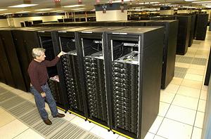 Der Stromverbrauch liegt bei etwa 3,9 Megawatt - genug, um 39 000 Glühbirnen zu je 100 Watt leuchten zu lassen. Die Einheiten sind über extrem schnelle Infiniband-Datenleitungen verknüpft. Es obliegt nun der Kunst der Programmierer, für den jeweiligen Anwendungszweck das Optimum an Rechenleistung herauszuholen.