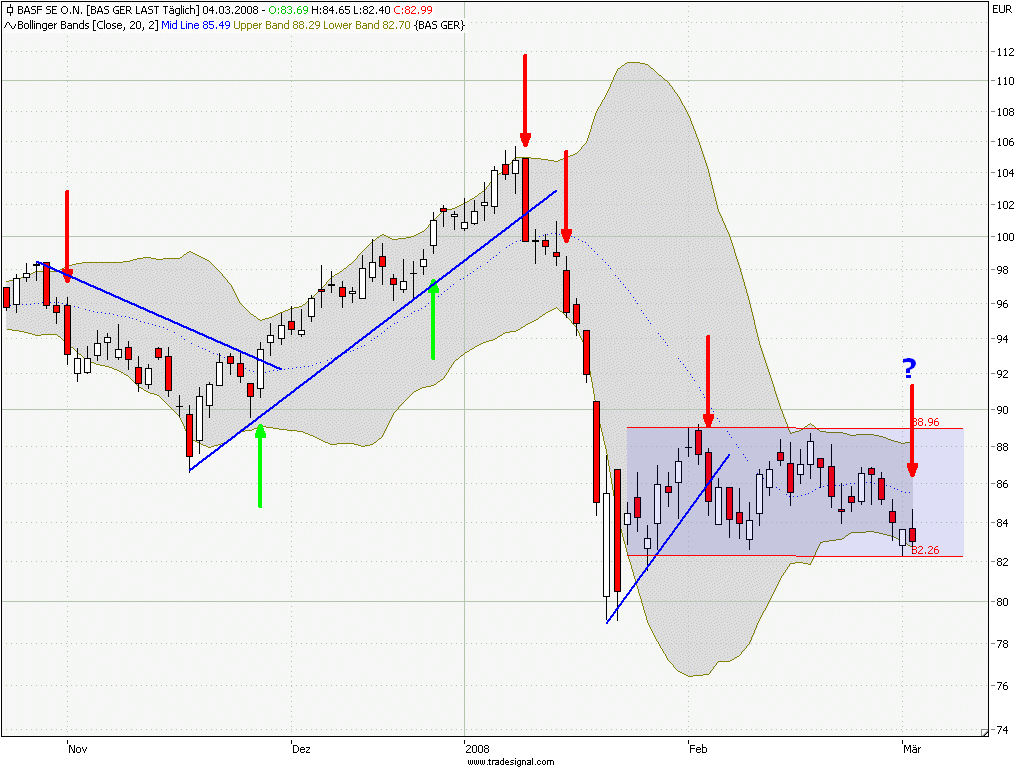 Mit BASF bin ich noch nicht so richtig warm geworden, was hauptsächlich auf den Zickzackkurs des letzten Jahres zurückzuführen ist. Momentan kämpft der Konzern aber um ein bearisches Fortsetzungssignal. Gelingt der Ausbruch aus der Konsolidierungsrange gen Süden, sollte ein Run bis 75€ drin sein.