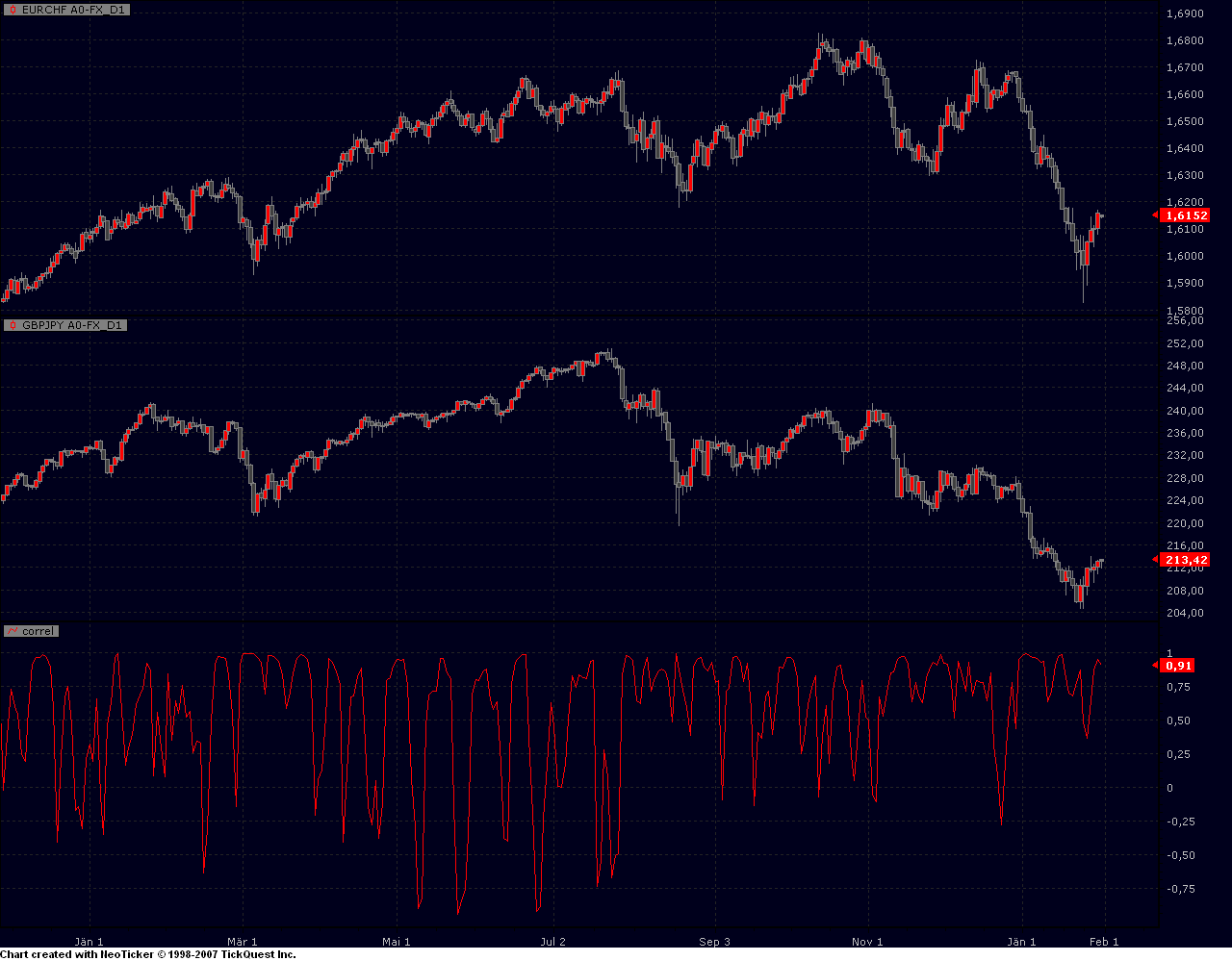 Ich habe die Korrelation über die letzten 30 Tage jeweils berechnen lassen. Deine Grafik zeigt aber, dass man mit short EUR/CHF die meisten Bewegungen von GBP/JPY aufgefangen hätte..Der institutionalisierte Börsenwahnsinn im Münsterland: Münsteraner Börsenparkett e.V.
