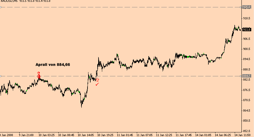 Die 884,66 waren ein starker Widerstand, wie ich geschrieben hatte. Die Ansteuerung von 925 Dollar sind im Gange. Egal wann du eingestiegen bist, bei 925 sollte man die Reißleine ziehen.
