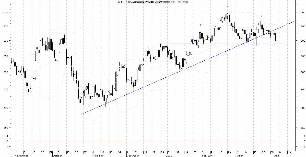 Fundamental gehöre ich beim Gold ja eindeutig ins Bullenlager, aber das sieht mir nicht gerade bullisch aus.