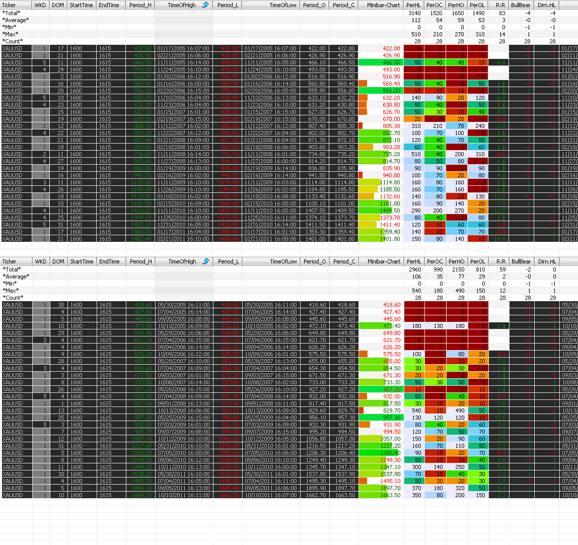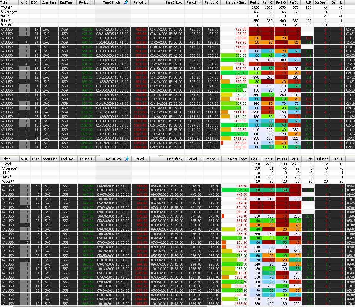 Unten haste im Anhang die Stunde 15:30 - 16:30 des Gold Mini Fut. seit 2009 als csv Datei.