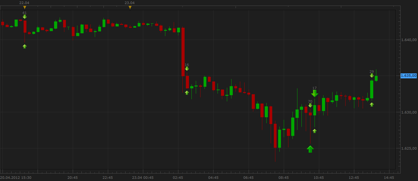 Bei den Charts handelt es sich übrigens um meine Trades bei FXCM, so wie sie von dem Broker automatisch dargestellt werden. Der Spread ist sehr hoch im Vergleich zu Futures. Von daher werde ich mir irgendwann wieder einen Futurebroker suchen.