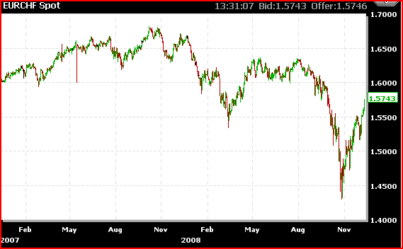 Es ist schon irgendwie verrückt, von oben drückt der Fluss Euro und von unten versucht CHF eine Staumauer entgegen zu halten. Das ganze geht dann eine Zeitlang gut, bis dann die Unterstützung bricht und eine neue aufgebaut wird, welche eisern verteidigt wird. Ein wahres Schlachtfeld und meiner Meinung nach sehr einfach zu traden und zwar in der Unterstützung wie im Bruch.