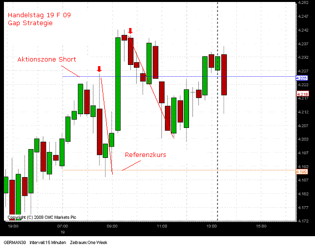 Für Gap Strategie: Einstieg Short an der ersten Aktionszone , wenn DOW Futures um 8h MEZ bis zu 40 Punkten im + und beim Einstiegspunkt nachgeben . Einstieg Short an der zweiten Aktionszone wenn DOW Futures um 8h MEZ von 40 - 80 Punkten im + und beim Einstiegspunkt abbröckeln. Enthaltung , wenn Dow Futures über 80 + und bis zum möglichen Einstiegspunkt weiter zunehmen. Invers für Long Positionen. Positions Management und Gewinnmitnahmen wie oft beschrieben . Ja , nachlesen kann man erwarten . Positions Glattstellungen ,ob Gewinn oder Verlust, spätestens kurz vor 14:30h.