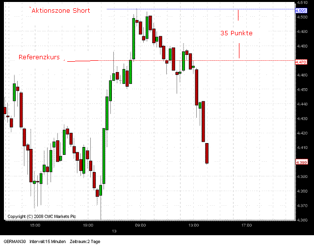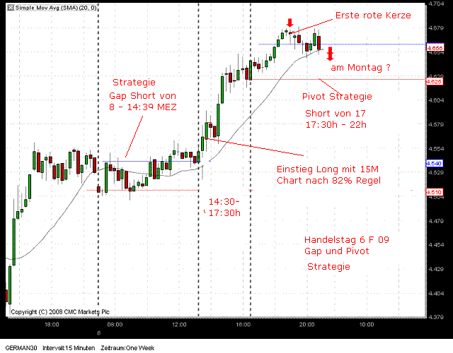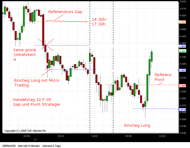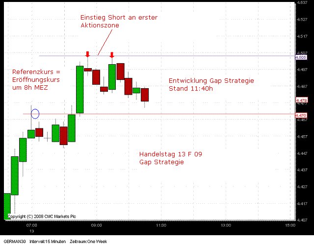 Gap Strategie in Aktion. Zur Zeit wird Kurs mit 4460 = 45 Punkte unter Einstieg Short notiert. Damit wurde bereits für 2 Stück German 30 das Gewinnziel erreicht. Siehe auch eingefügter Chart von 11:40h .Ist veraltet ! -