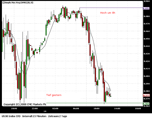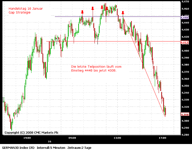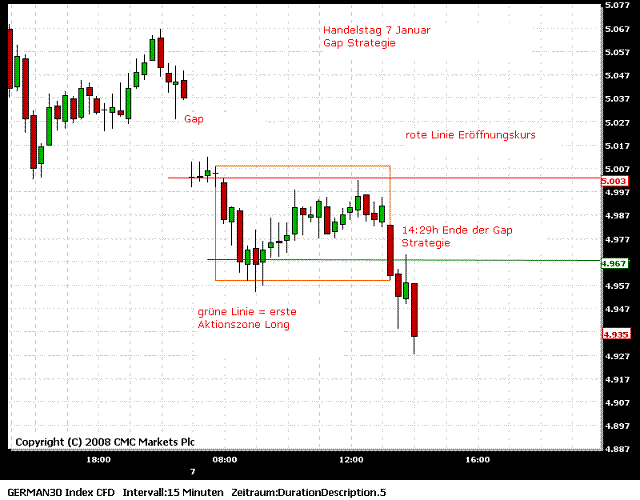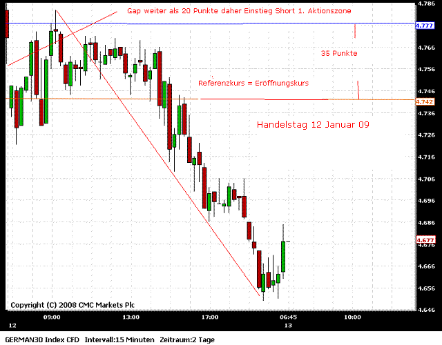 Es gab zwei Trades (bei mir), ein Longtrade von der ersten Aktivzone aus - glatt gestellt am Xetra-Schlusskurs. Und ein Shorttrade von der zweiten Aktivzone (oberhalb des Xetra-Schlusskurses) - glatt gestellt an der ersten Aktivzone.