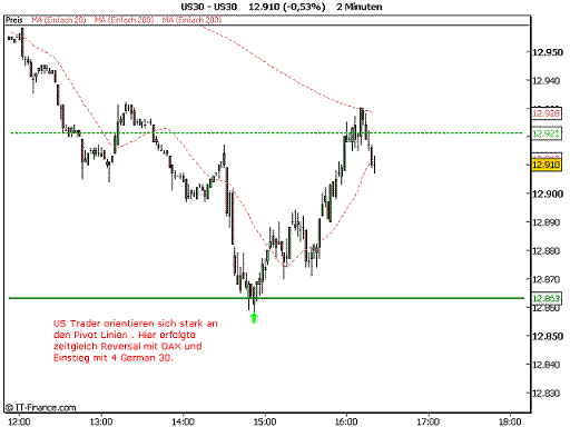 Ab 17:35h DAX Pivot Strategie. Erklärungen im Chart eingefügt.