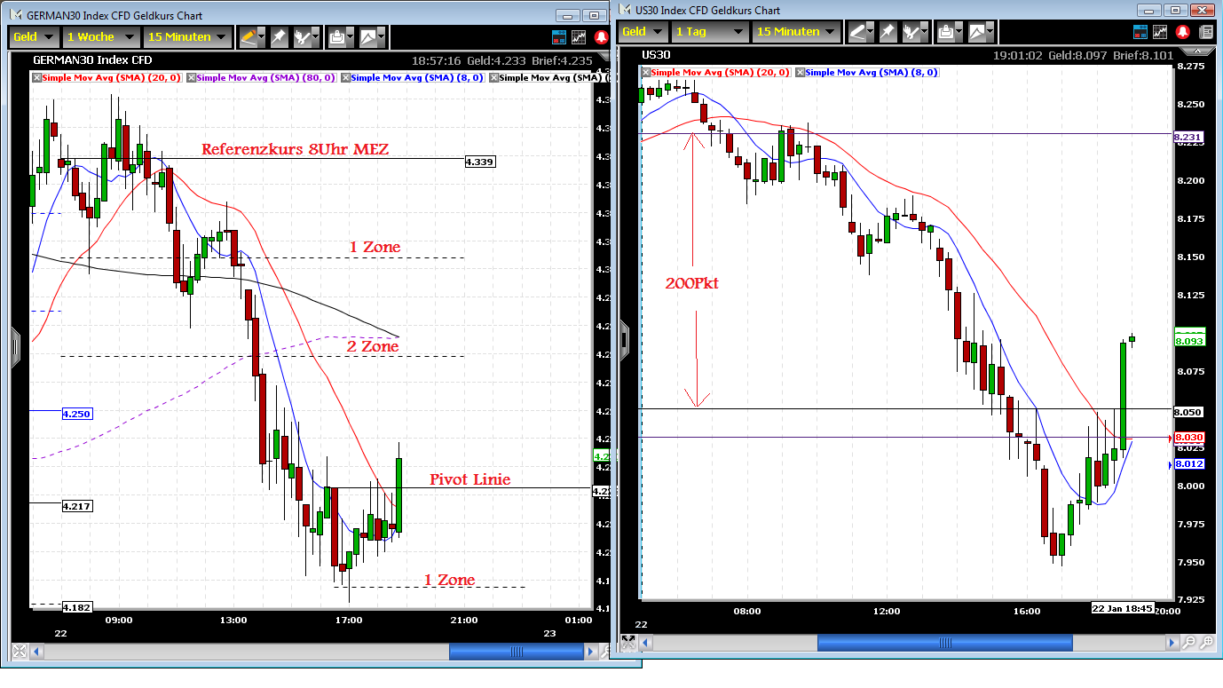 Danke PT für die Hinweise. Es gab in dieser Hinsicht Aufklärungsbedarf für einige Mitglieder die mit einem anderen Broker arbeiten. Persönlich erwähne ich noch FDAX /German 30 bei cmc weil dieser Begriff in diesem Forum eine gewisse Tradition hatte. Jede Position ( wenn auch nur Teilposition wie heute morgen ) die von einer Zone mit Verlust in die folgende Zone durchgehandelt wird , ist für die meisten Marktteilnehmer ohne engen Stop Loss , wie es die Strategie vorsieht, ein schwieriges Umfeld in dem die meisten Fehler gemacht werden. Daher: don´t cry victory too early ! -