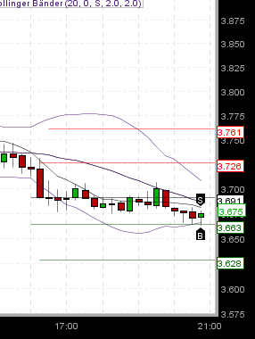 Short Position eröffnet werden. Im eingefügten 5M Chart wurde der Referenzkurs = Eröffnungskurs mit 3729 festgelegt. Der Einstieg Short nach Unterschreitung der ersten 5M Kerze notierte 3722. Ausgehend von diesem Kurs wird dann die nächste Aktionszone Short mit 35 Punkten = 3757 eingezeichnet. Innerhalb des Rechtecks Micro Trading . Die nächsthöhere Aktionszone Short wurde nie angehandelt und der Kurs fiel ca 60 Punkte. Gemäß dem 15 M Chart ( nicht eingefügt ) rutschte der Kurs über den Ersteinstieg long und die Short Position konnte nach der ersten Umkehrkerze entweder glatt gestellt oder noch besser gedreht werden. Im Gegensatz zu gestern war der Markt heute sehr strategie- freundlich. -