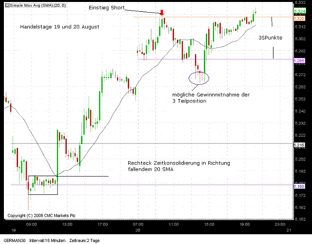 3. Tägliche FDAX Chartbetrachtung ( 15 Minuten Chart ). Analog zum eingefügten Chart von cmc wir der
