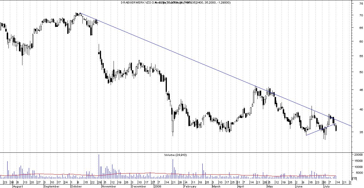 Der Abwärtstrend von Drägerwerk hat ja schonmal profitabel für mich gearbeitet, vielleicht kann ich hier ja mal wieder ein Erfolgserlebnis verbuchen. Mal sehen ob ich trotz des schwachen nachbörslichen Handels noch zu 35,44 morgen reinkomme. Sl würde dann bei 37,54 liegen, tp bei 30,52